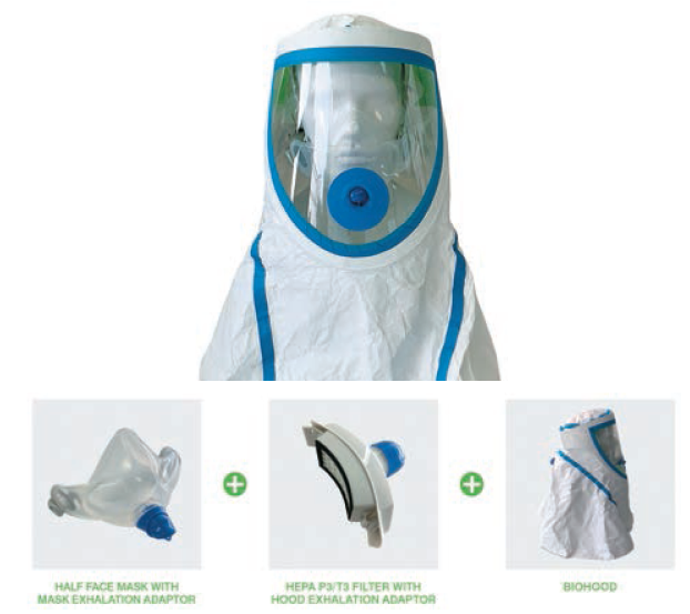 • Only PAPR hood design to completely cover the respirator when worn – minimising device contamination